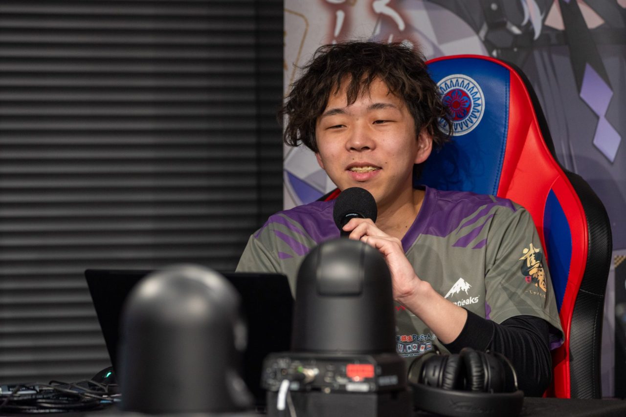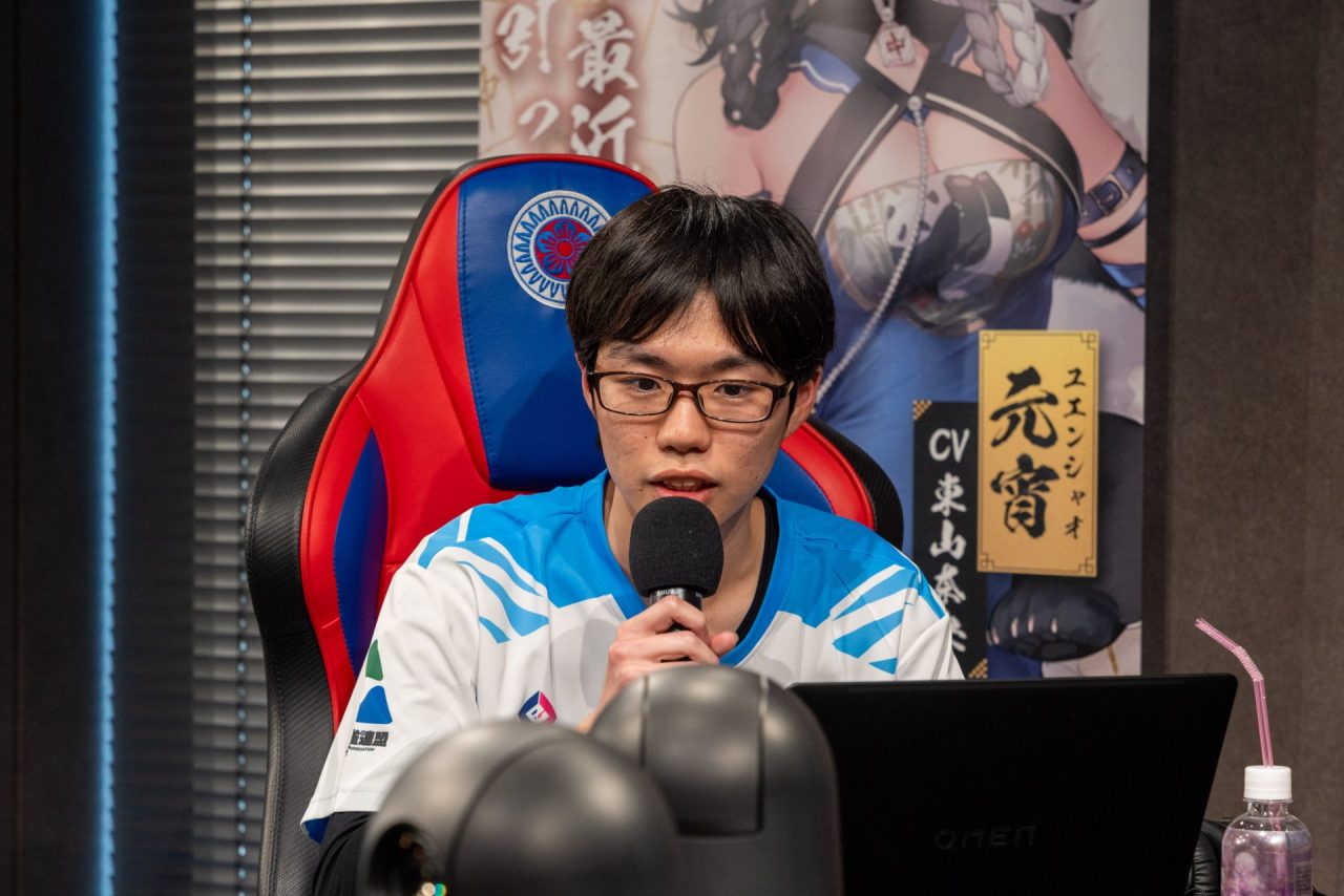 セレンガ選手は、U-18西場のFIRST STAGEで2連勝した麻雀を今大会でも発揮。跳満を含む高打点のアガリを決め、一時はトップに躍り出ました。しかし、持ち時間を使い切る難しい判断が続く中、倍満放銃で2位に着地。対局後は「トップ取り逃しちゃって、後ろの二人にはちょっときつくなっちゃった」と悔しさを滲ませつつも、「僕たち前の二人の分も頑張ってほしい」とチームメイトに託しました。