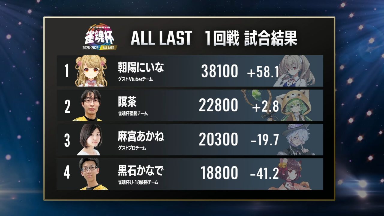 1回戦:朝陽にいな選手がトップ発進! VTuberチームに勢いをつける