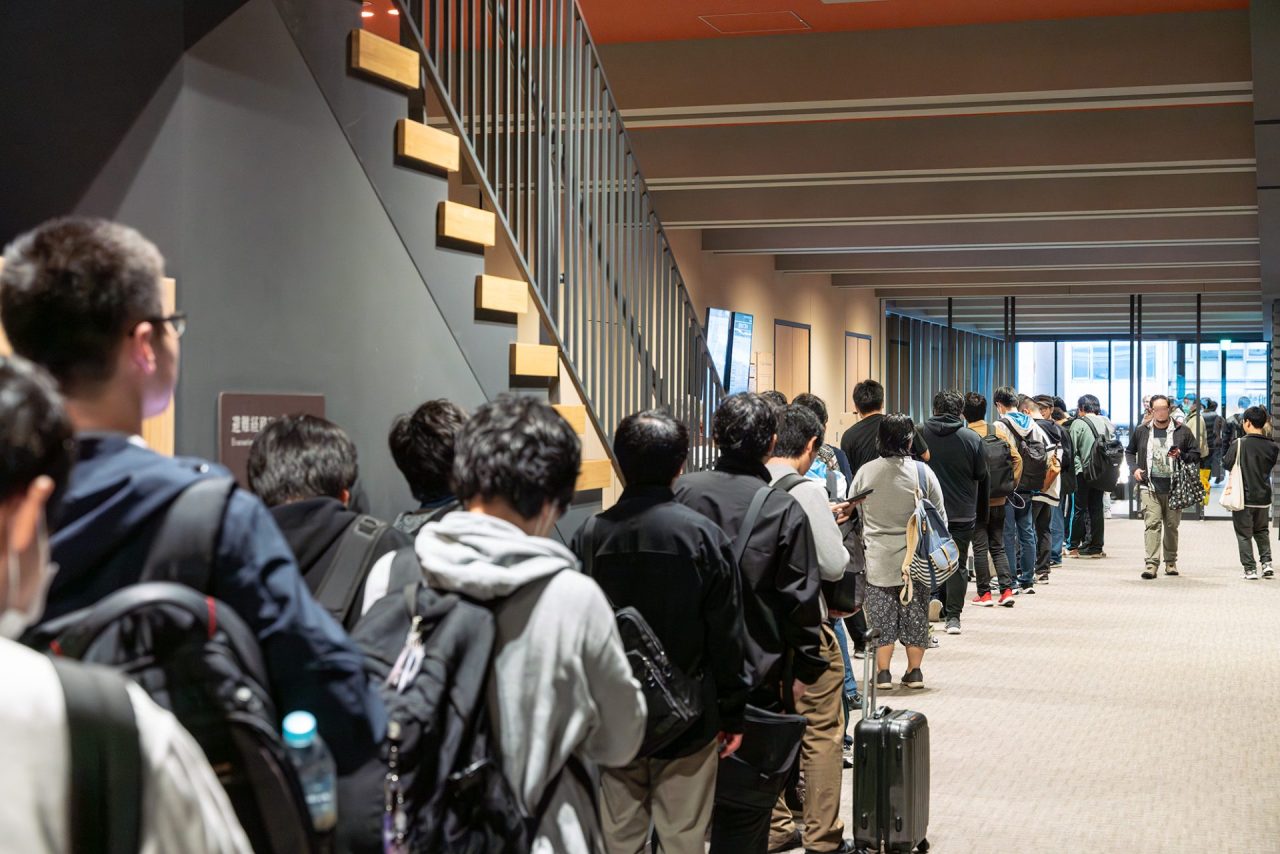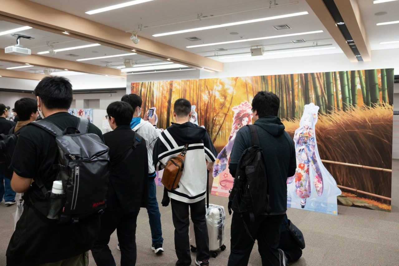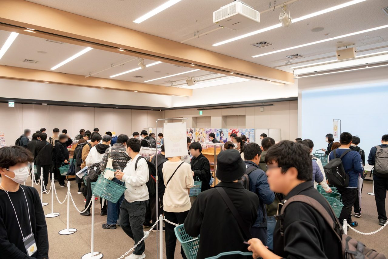 開場時には、会場に入るとすぐに目に入るフォトスポットを撮影する様子や、グッズ購入後にメッセージを書く姿も見られました。中には時間をかけてイラストを描いてくれた先生もいらっしゃいました。
