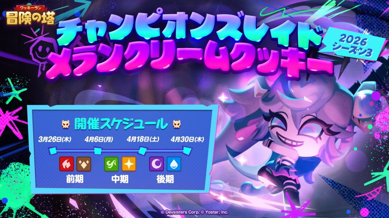 アビスレイドの実装に向けて、イベント「襲撃!メランクリームクッキー」も開催。プレイヤーのチャンピオンズレイドチケット消費数に応じて報酬を獲得でき、アビスレイドに関する情報も一部閲覧できるようになっています。