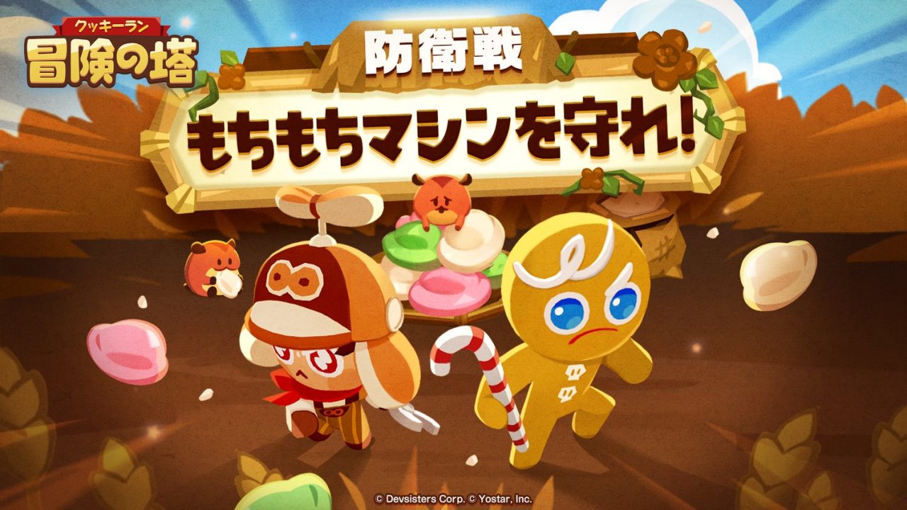 番組内では、新コンテンツ「防衛戦 もちもちマシンを守れ」のプレイも披露されました。他のプレイヤーと協力して敵を阻止しながら「もちもちマシン」を防衛するタワーディフェンス型のコンテンツで、1戦につき10ウェーブまでの構成。ウェーブごとに出てくるカードを選択しながらクッキーを強化していきます。