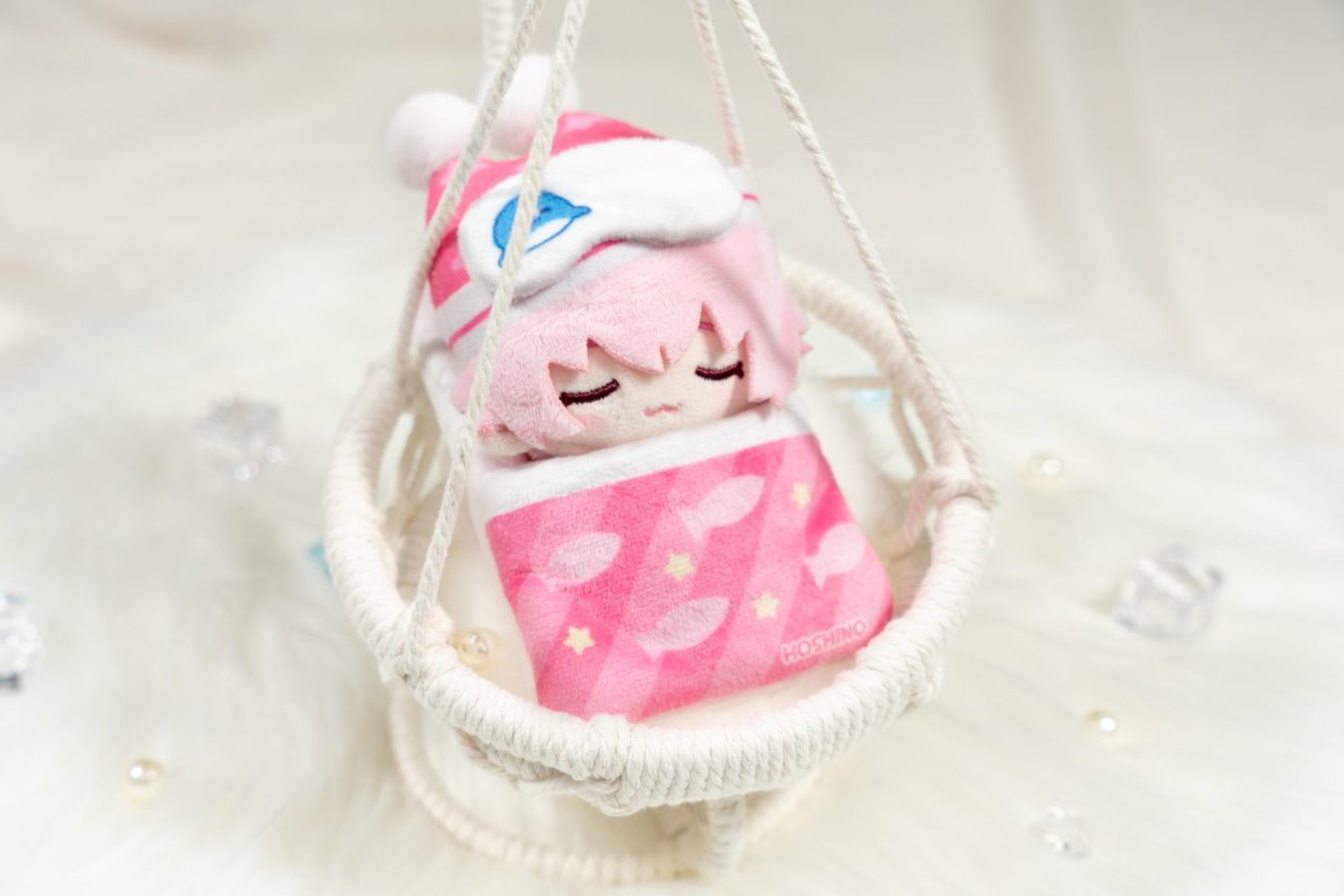 本体とお布団に内蔵されたマグネットで、お家の冷蔵庫などに簡単に飾れる他、付属のチェーンでバッグやリュックに付けて一緒にお出かけできます!